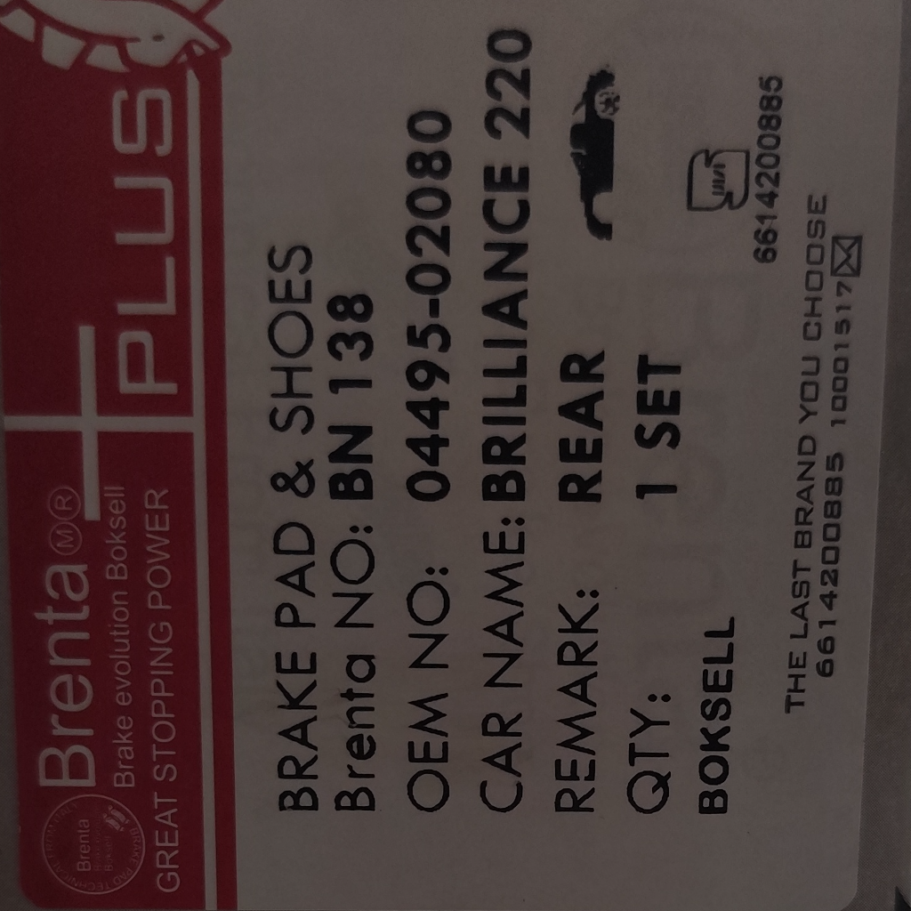لنت عقب خودرو برلیانس مدل220 با6ماه گارانتی تعویض در صورت سوت کشیدن تقدیمتون میشه